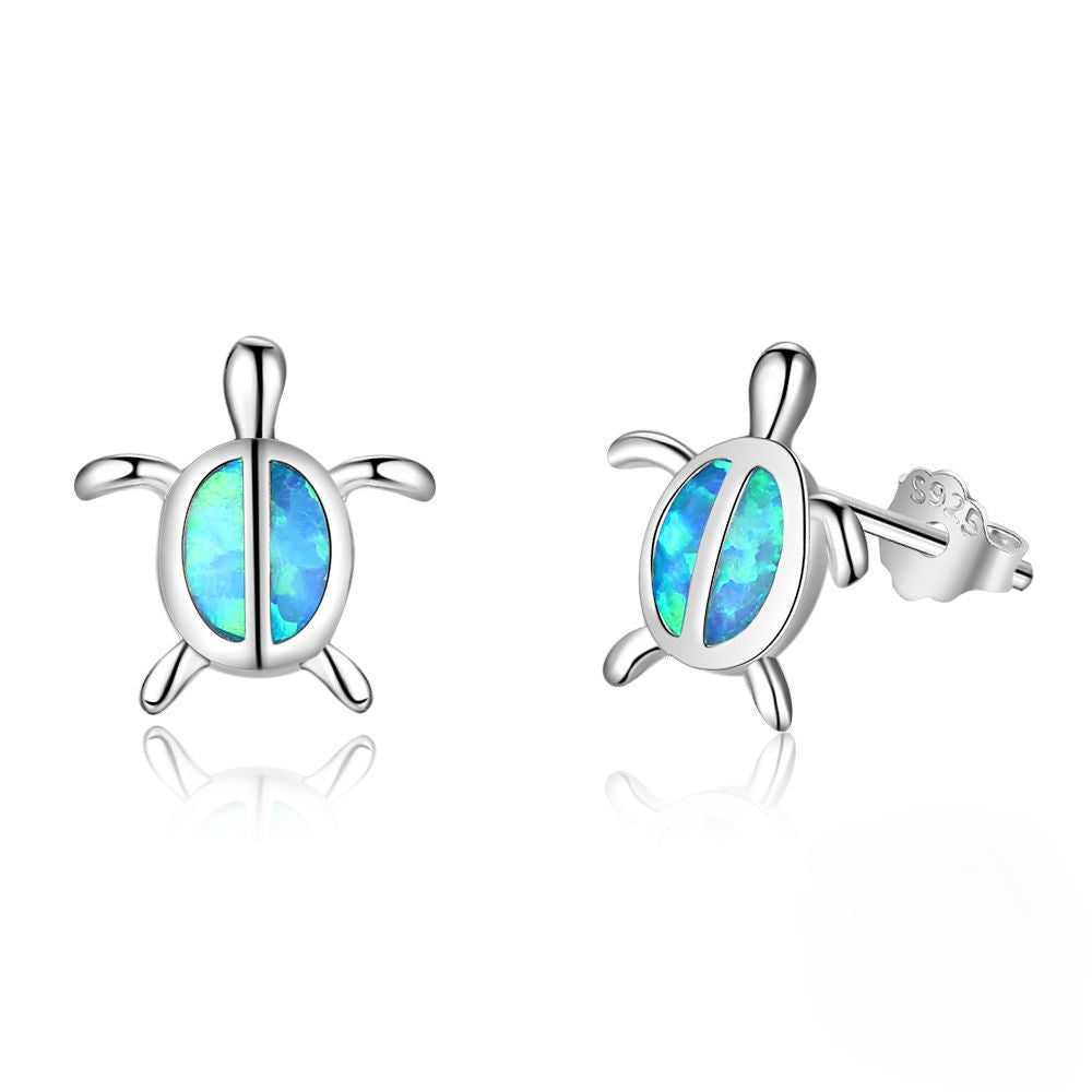These sophisticated. sterling silver stud earrings showcase a beautiful little turtle that inlaid with vivid blue opal. The perfect finishing touch for any ensemble. these earrings bring a subtle elegance to your look. With a lovely little turtle design and an eye-catching blue opal. these sterling silver stud earrings bring a stylish touch to any outfit. Invest in playful sophistication with these earrings that will remain part of your signature look for years to come.