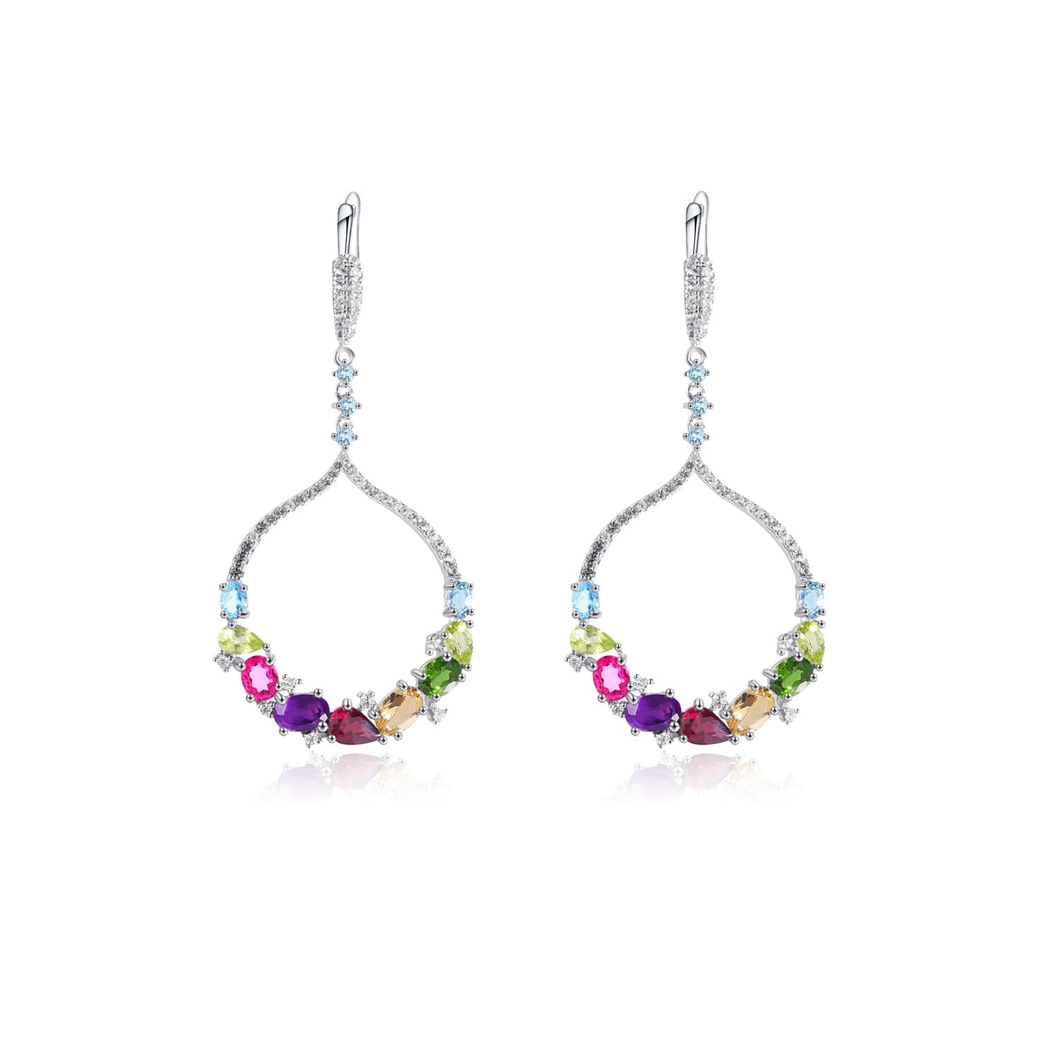 Elegantly crafted from sterling silver. this drop earrings feature an exaggerated and advanced design with a circle garland inlaid with colorful gemstones. Perfect for any occasion. this earrings will add a unique and sophisticated touch to any outfit.