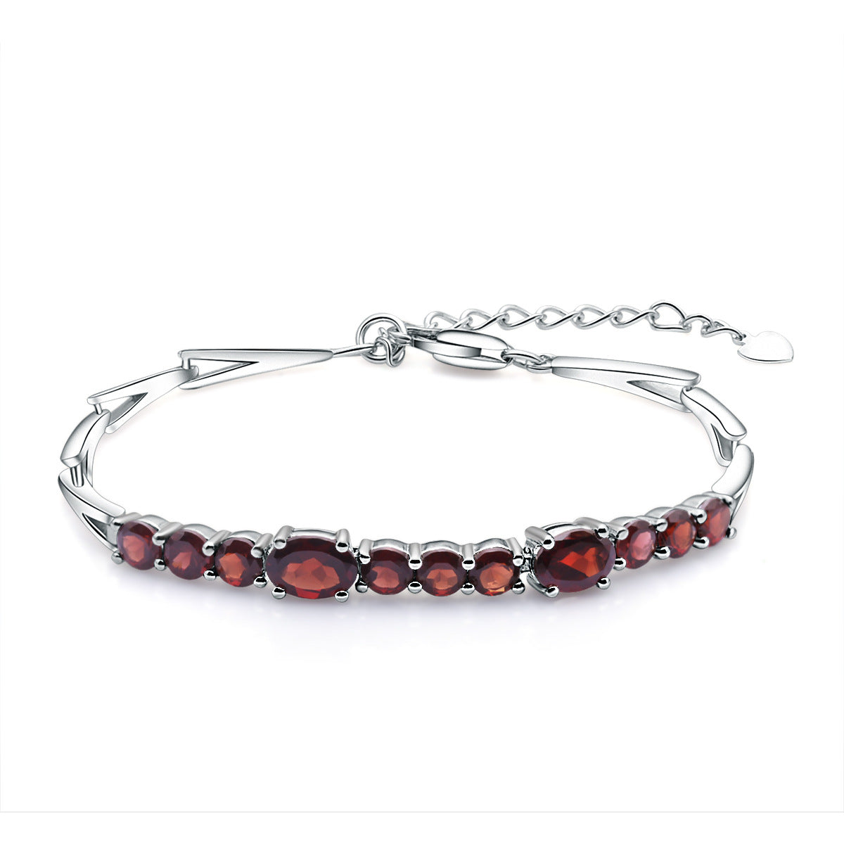Look effortlessly elegant in this delightful bracelet. featuring a row of natural garnet beading. Crafted in sterling silver. this gorgeous accessory showcases the deep red hue of the garnets in an eye-catching design that's sure to make a statement.