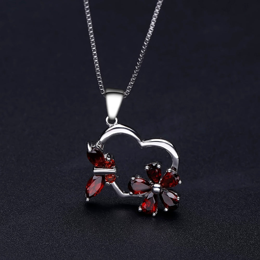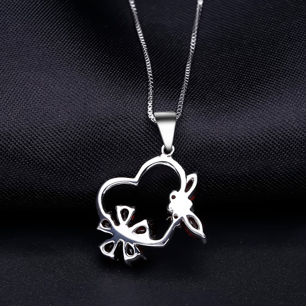 This Temperament Style Inlaid Natural Garnet Heart with Flower and Butterfly Pendant Silver Collarbone Necklace for Women features a delicate. hollow heart pendant with two inlaid natural garnet decorations - a flower and a butterfly. Its lightweight construction and intricately crafted design make it the perfect accessory for adding a touch of natural beauty to any outfit.
