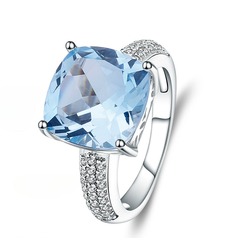 This stunning Cathedral style Cushion Cut Natural Blue Topaz Silver Ring is the perfect accessory for any occasion. Crafted from sterling silver with shinny blue topaz. this beautiful piece of jewelry is sure to add sparkle to your look. The Cushion Cut maximizes the reflective beauty of the blue topaz. providing a timeless finish.