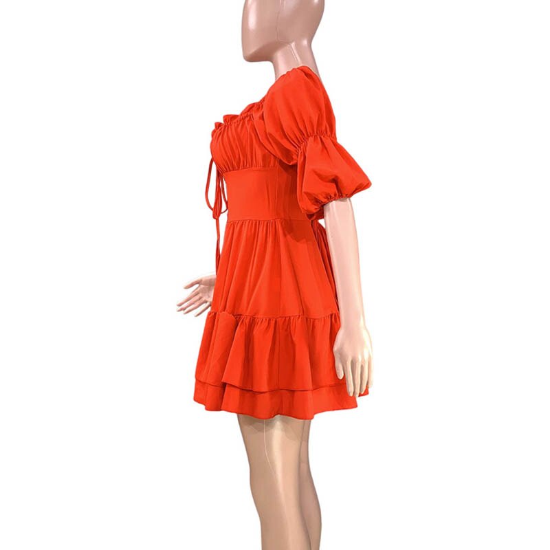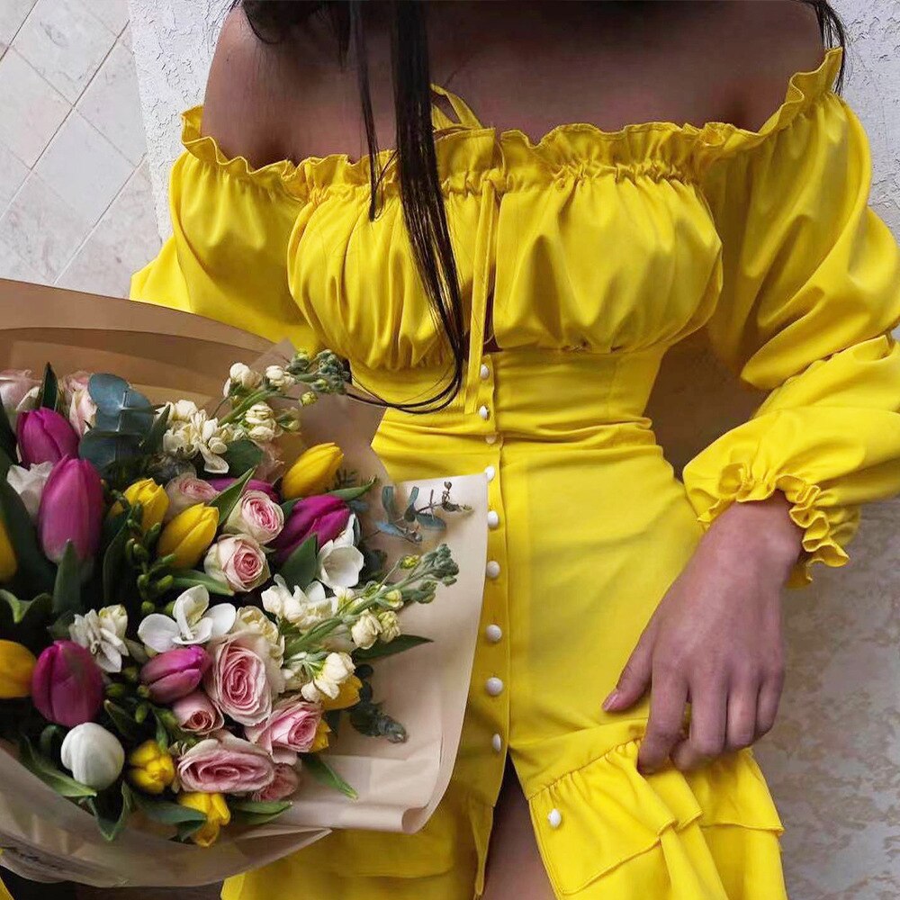 Fashion Woman 2023 Slash Neck Off Shoulder Puff Sleeve Ruffles Mini Dress Streetwear Sexy Girls Bodycon Evening Party Dresses
