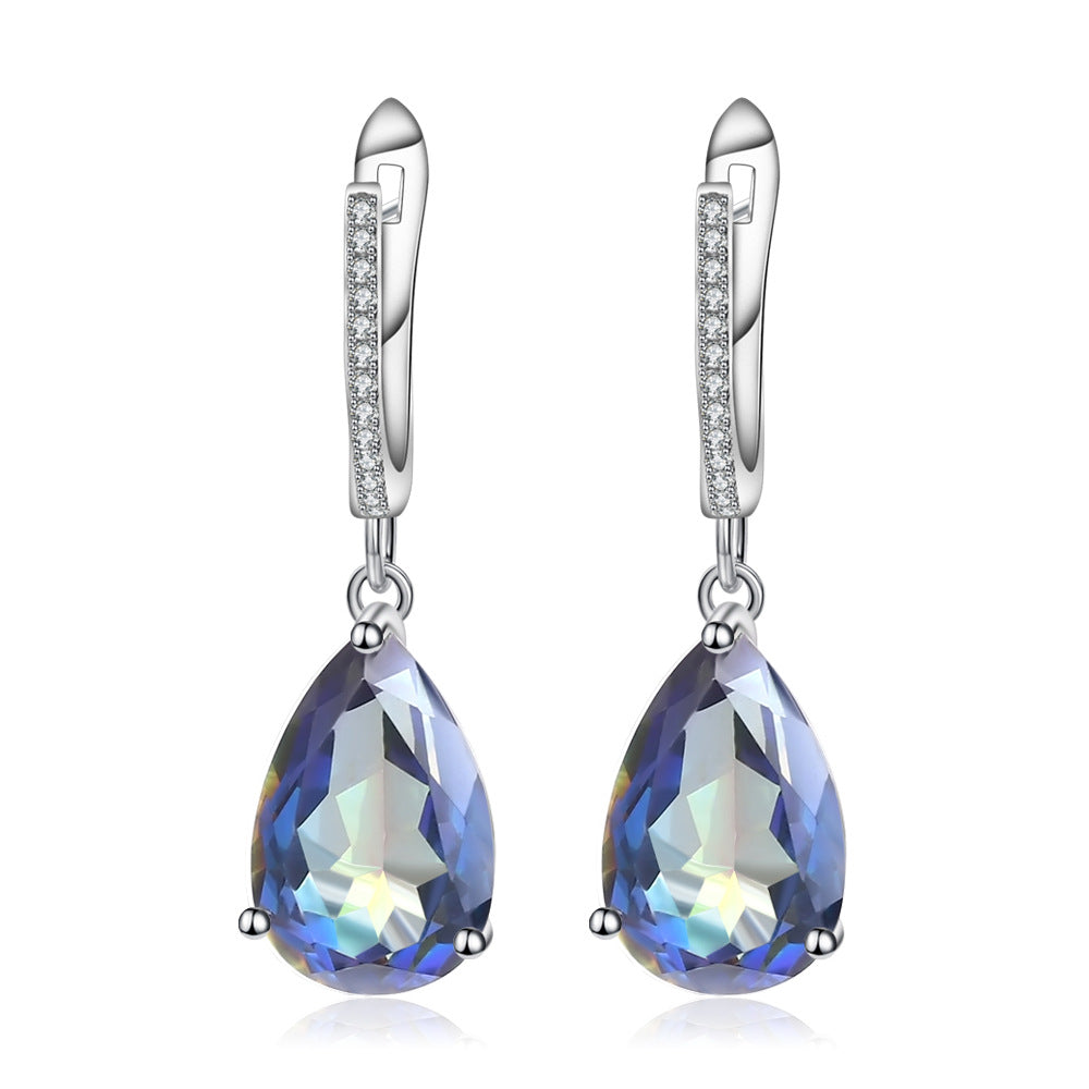 This sophisticated European crystal water droplet earrings provide a beautiful finishing touch to any outfit. Made from sterling silver and featuring a captivating blue crystal droplet pendant. this stylish earrings is sure to turn heads. Perfect for the modern woman.