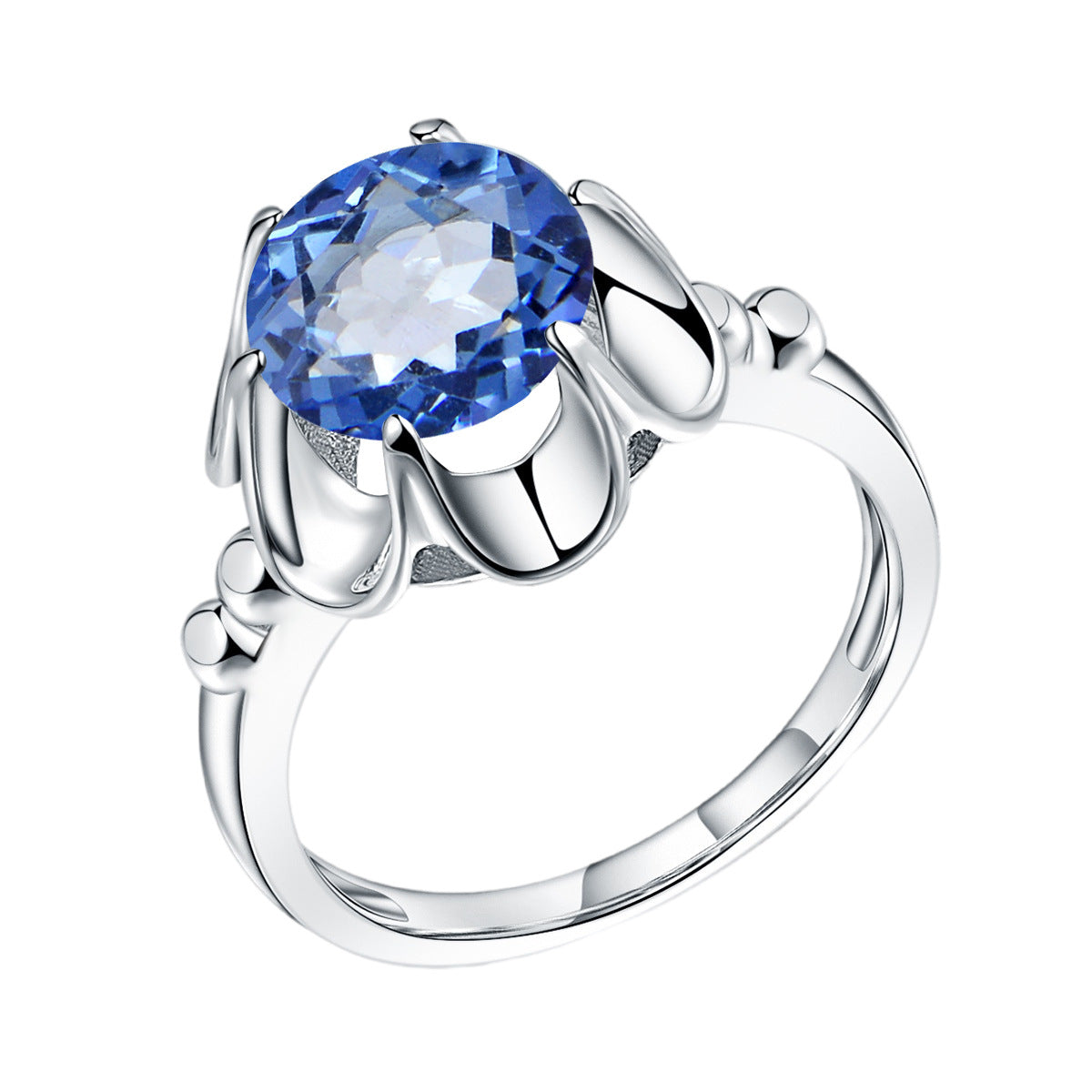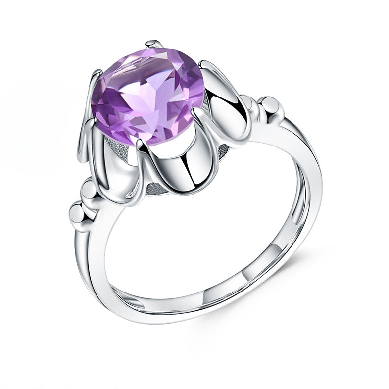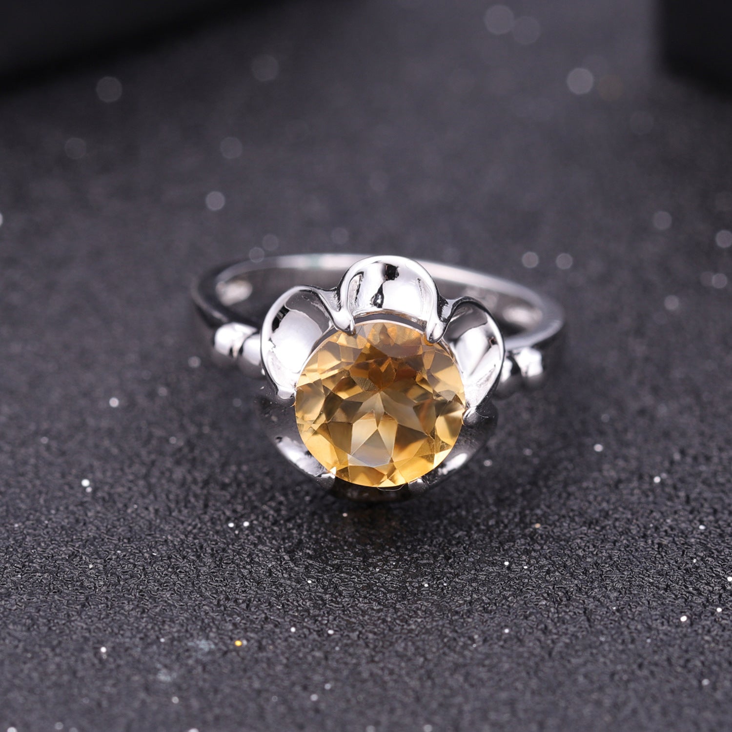 This beautiful ring is crafted with a round cut gemstone and beautiful flower shape prongs. creating an eye-catching design that is sure to impress. The high-quality sterling silver shines brightly and adds a luxurious touch. Perfect for any occasion.