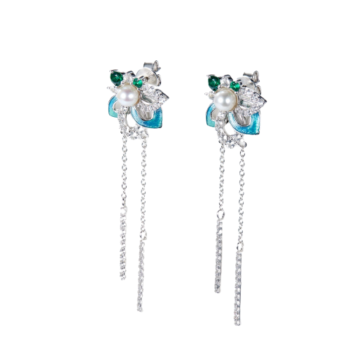 Our Firefly Enamel Earrings bring an elegant. stunning touch to any outfit. Adorned with a lustrous pearl and tassel detailing. these earrings feature an exquisite enamel finish that shimmers with every movement. Wear them to complete any beautiful look.