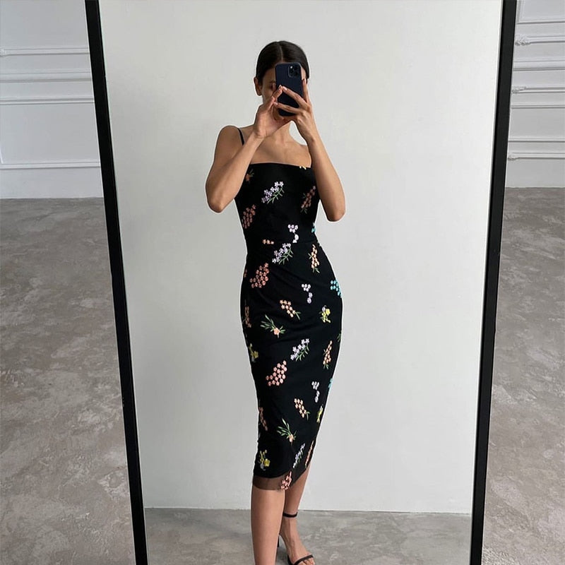 Flower Embroidered Lace Suspender Dresses Women Elegant Sleeveless Backless Dress Female Summer Evening Party Ladies Vestidos
