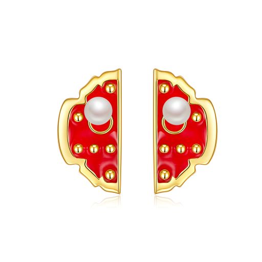 This stylish pair of enamel earrings combines an iconic Forbidden City Gate design with luxuriously lustrous pearls. Crafted from sterling silver. this earrings are perfect for adding an element of elegance and sophistication to any look.