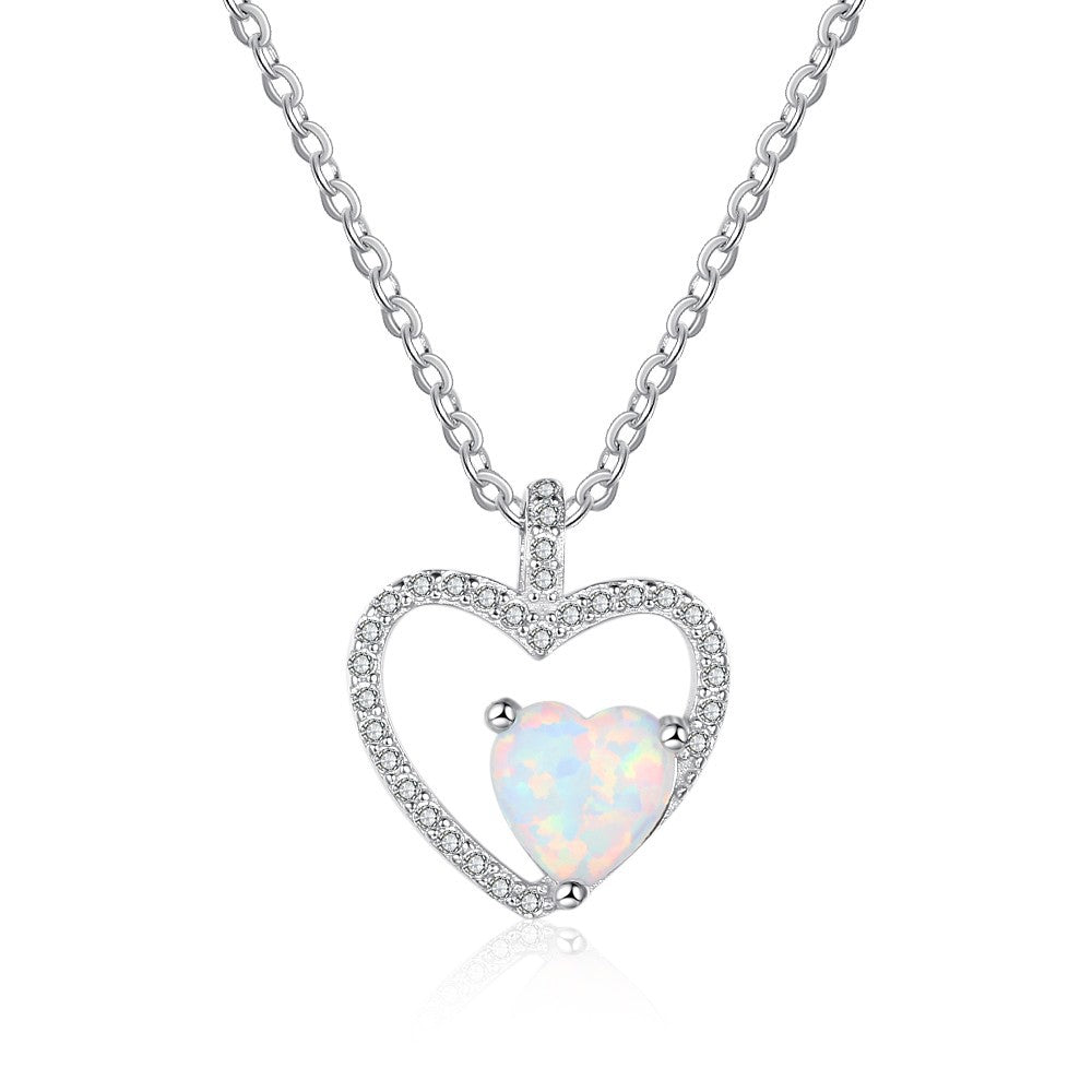 This exquisite necklace features a stunning hollow out Zircon Heart Pendant inlaid with a precious Heart Shape Opal. all set in a classic Sterling Silver for an unforgettable piece of jewelry perfect for any special occasion. This unique artisanal design adds a touch of luxurious elegance. making any outfit even more distinct.