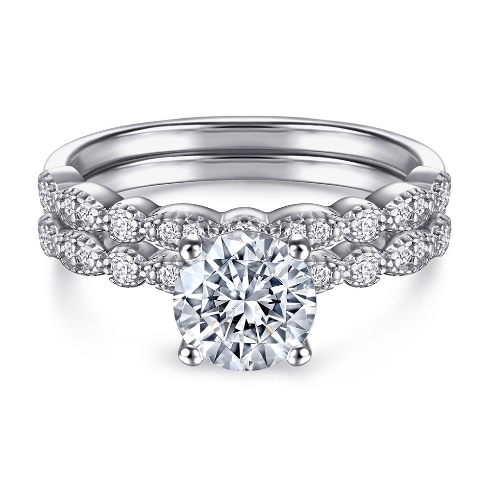 This Four Prongs Round Zircon with Beading Silver Ring Set for Women is a stunning set of jewelry that makes a beautiful addition to any outfit. Made with sterling silver. the set is comprised of a beading ring arm decorated with small zircon and a round zircon set in four prongs. You won't be able to resist the breathtaking beauty of this set.