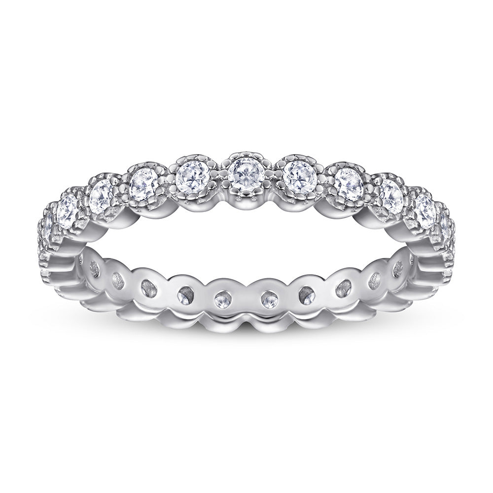 This elegant Full Row Round Zircon Silver Ring for Women composed with round zircon stones for eye-catching sophistication. Crafted from quality sterling silver. this glamorous ring is perfect for any occasion.