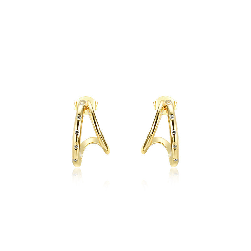 This elegant earrings feature a double layer C-shape design with shimmering Zircon. Made with sterling silver and perfect for everyday wear. they are sure to add a stylish finish to any look.