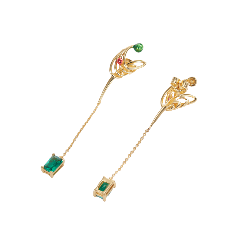 Delight in the stunning style of this Gold colour Heartstrings Enamel Earrings. Crafted with a rectangle green topaz pendant in a tassel design. this earrings is the perfect combination of classic and modern for a timeless look.