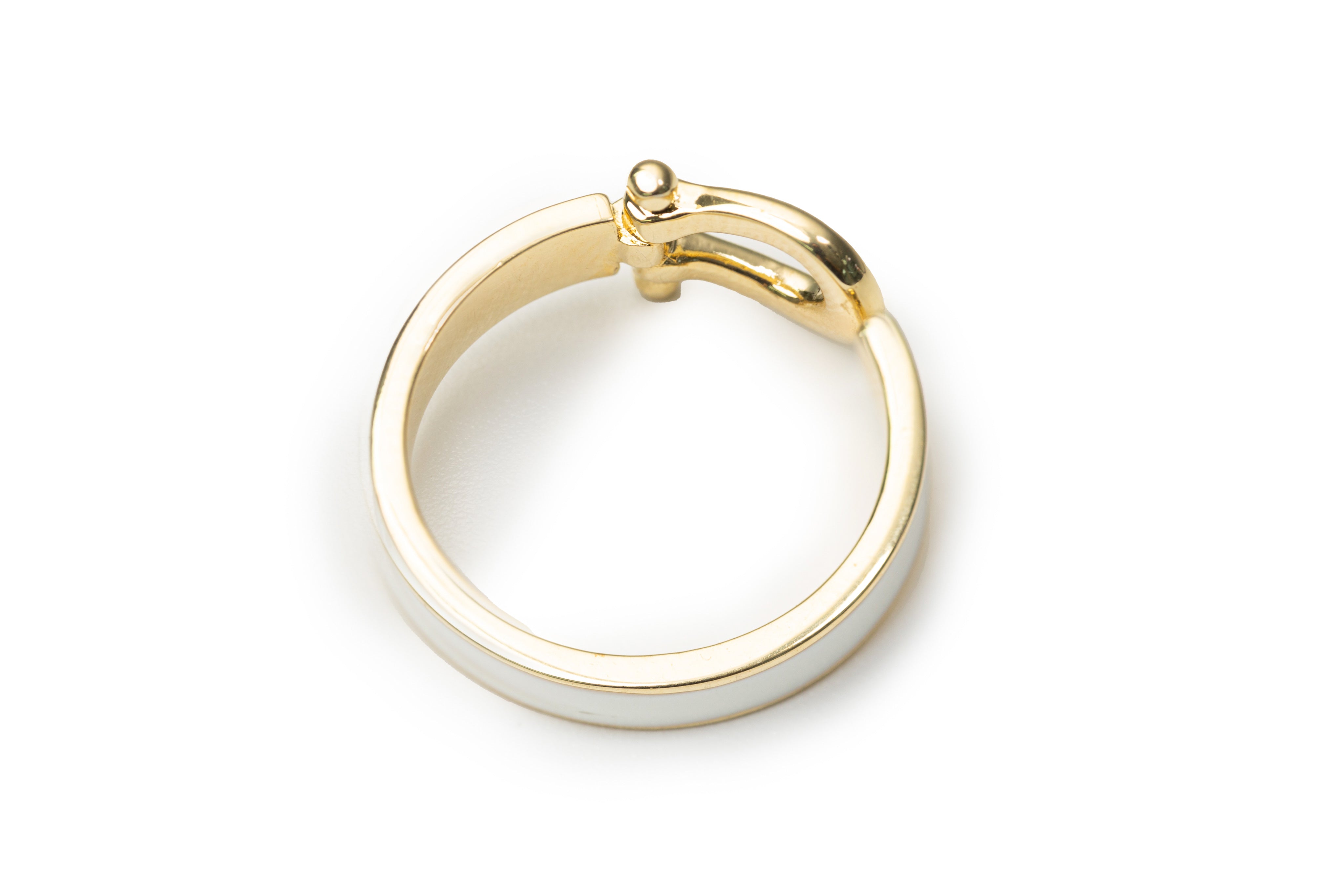 This golden belt shaped ring is perfect for any occasions. Crafted from gold-plated copper. and decorate with black or white accents. its charming design is sure to be cherished and admired. Its luxurious look will make a perfect addition to any style. adding a touch of class and sophistication.
