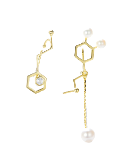 This fashionable Molecule Structure Shape Pearls Ear Bone Clips bring a unique asymmetric style to any outfit. Crafted with sterling silver plated in gold and quality enamel. the ear clips feature a classic molecule structure shape. giving them a luxurious and unique look. Add a touch of sophistication to any look with this stylish ear clips.