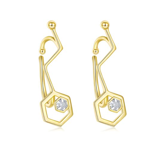This ear bone clips are crafted from golden enamel and feature a fashionable molecule structure shape with sparkling zircon to enhance any look. Perfect for adding a polished touch to any outfit.