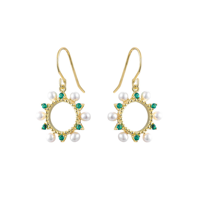 This eye-catching Hollow Circle with Green Zircon and Pearl Silver Drop Earrings are designed to make a statement. The circle is surrounded with sparkly green zircons and elegant pearls. creating a perfect blend of beauty and sophistication. Perfect for any special occasion.