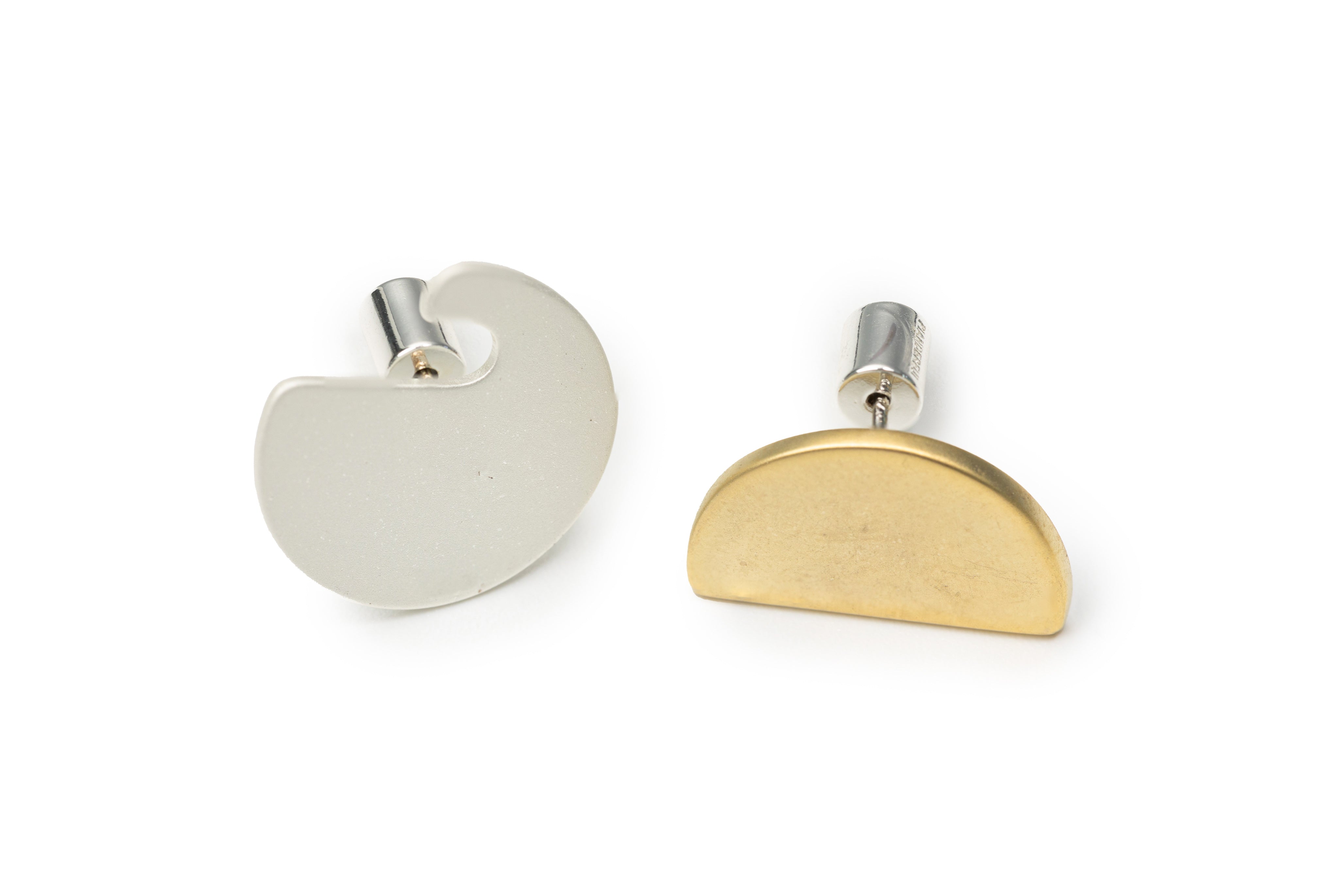 This Half Round Studs have an asymmetric design that's sure to make a statement. It have silver and gold for a modern and sophisticated look. this studs earring effortlessly combine style and elegance. Perfect for any occasion.