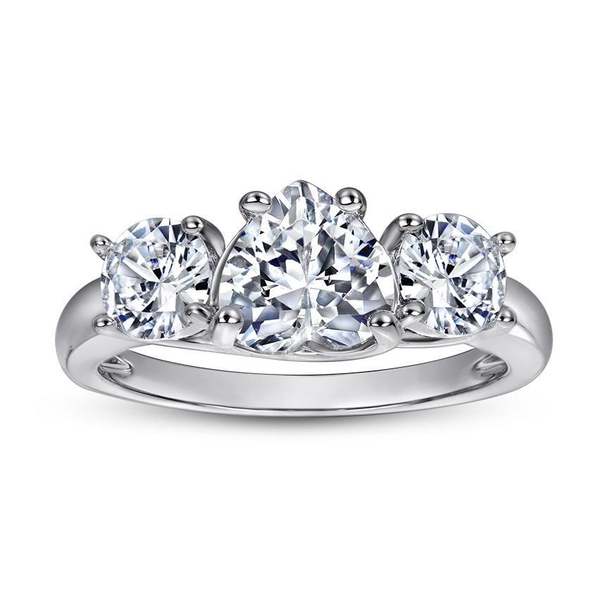 This ring features three stones design - a heart-shaped zircon with two round zircons - and is made of sterling silver. It is the perfect accessory for any occasion. adding a unique touch of sparkle and elegance.