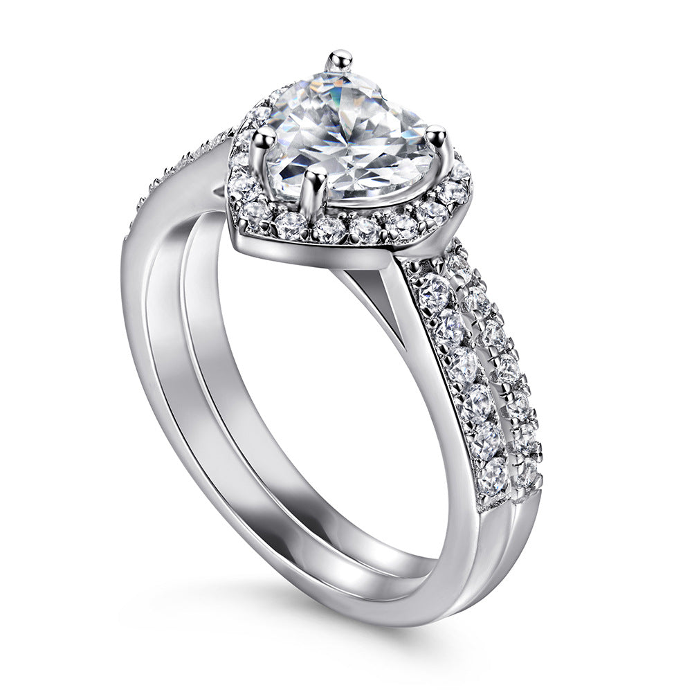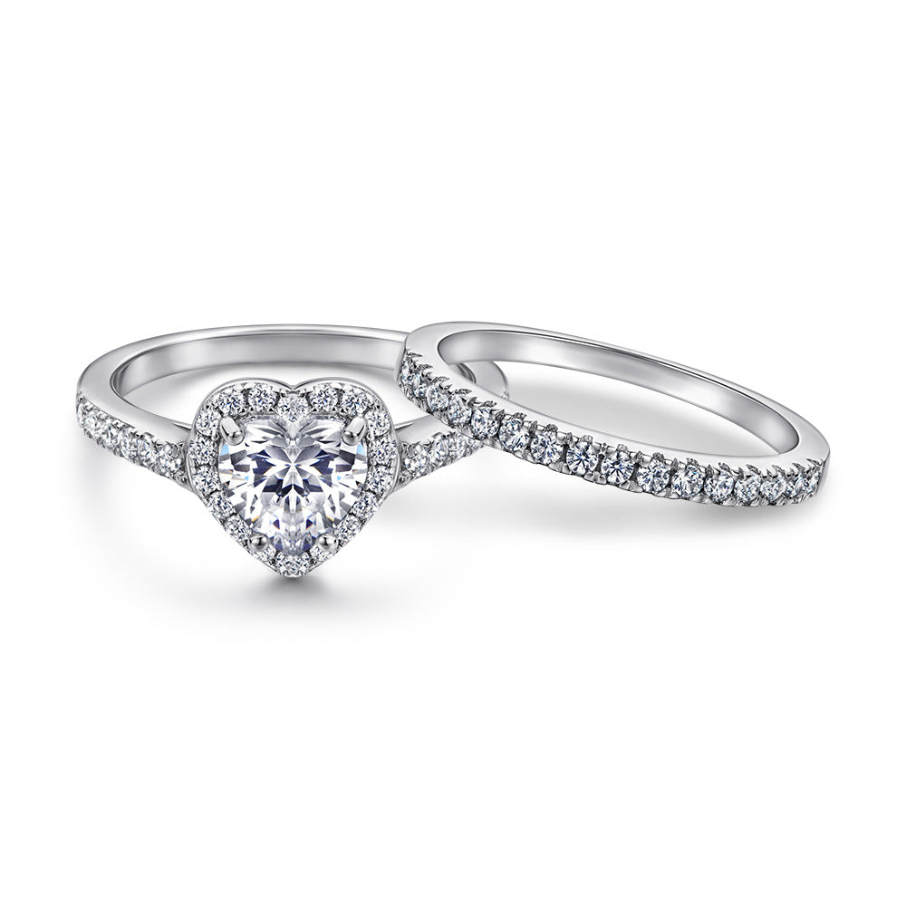 This exquisite Heart-shape Zircon Soleste Halo with Half Eternity Silver Ring Set is the perfect accessory for any woman. The set includes one heart-shape zircon with sparkly soleste halo ring and one half eternity ring beautifully decorated with zircons. bringing a beautiful brilliance to your outfit.