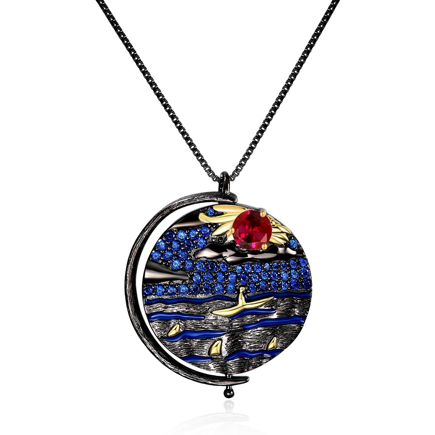 Complete any look with this elegant Italian Abstract Pattern Vintage Jewelry Design Inlaid Colorful Gemstone Boat In Lake Circle Pendant Silver Necklace for Women. Crafted with a striking circle pendant featuring a unique Italian abstract Boat In Lake pattern inlaid with colorful gemstones. this bold necklace is the perfect choice for an eye-catching. standout accessory.