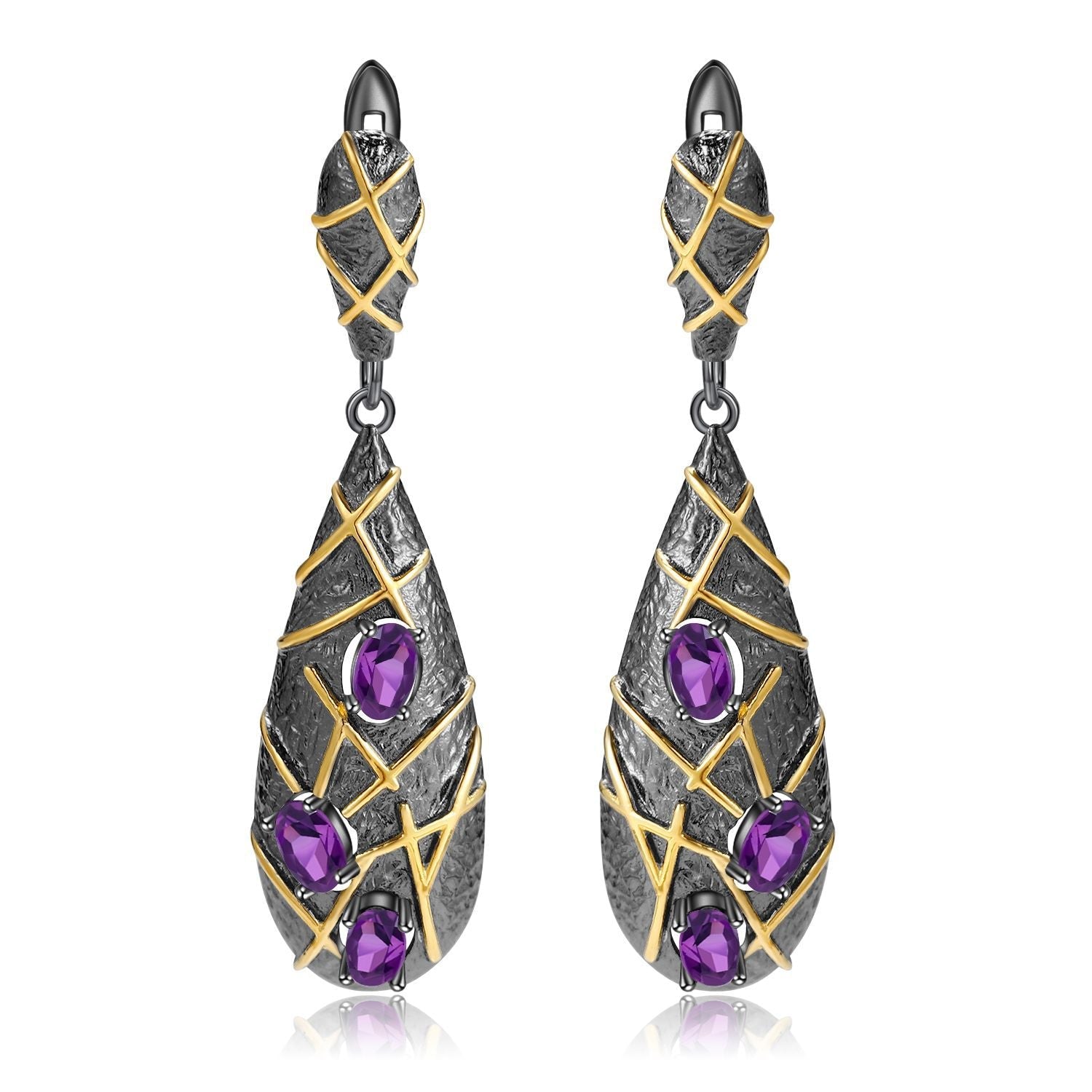 This beautiful Italian style earrings is made with sterling silver and feature water droplet pendants adorned with colourful gemstone inlays. The elegant design will add a unique touch to any outfit.