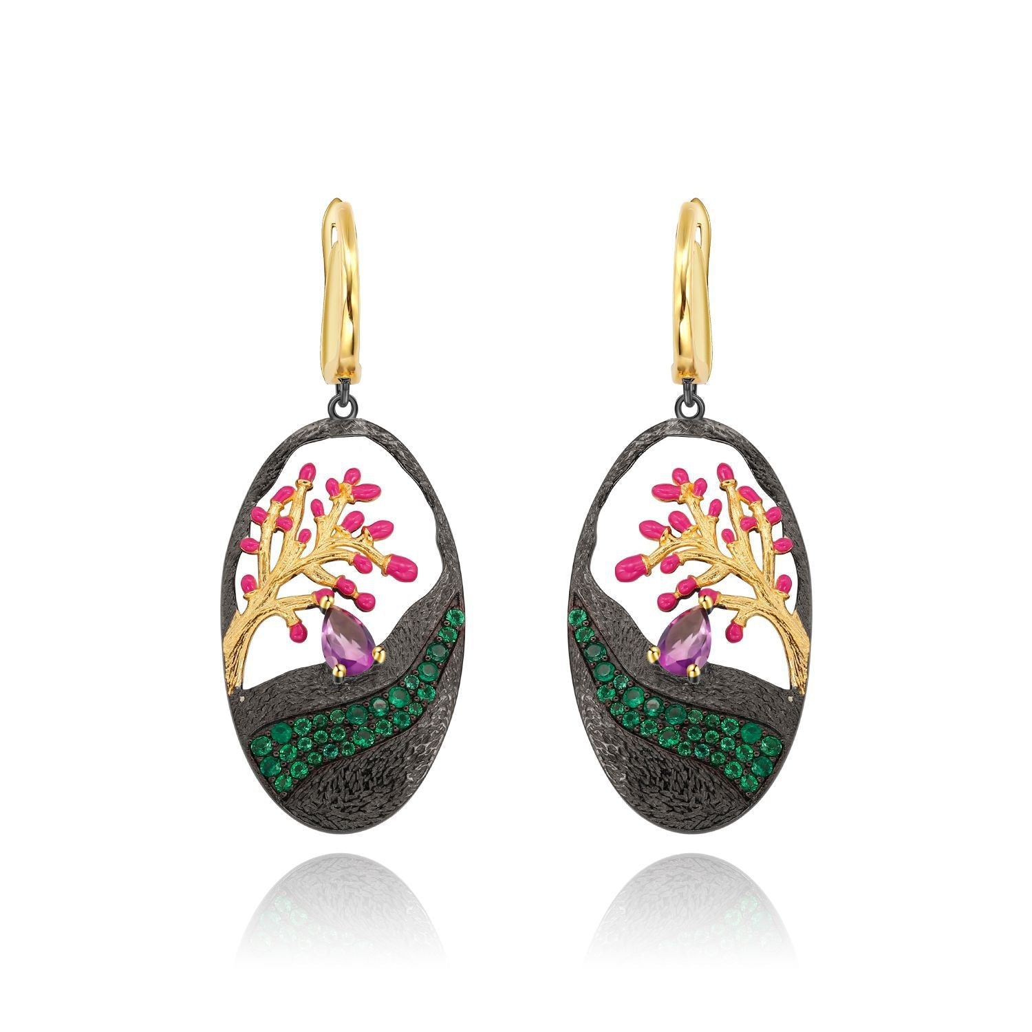 This Italian Tree Design s925 Sterling Silver Enamel Drop Earrings for women feature an eye-catching oval pendant crafted with a tree pattern inlaid with colourful natural crystals. This beautiful earrings is made from sterling silver and enamel. making them durable and long-lasting. Perfect for adding a subtle burst of color to any look.