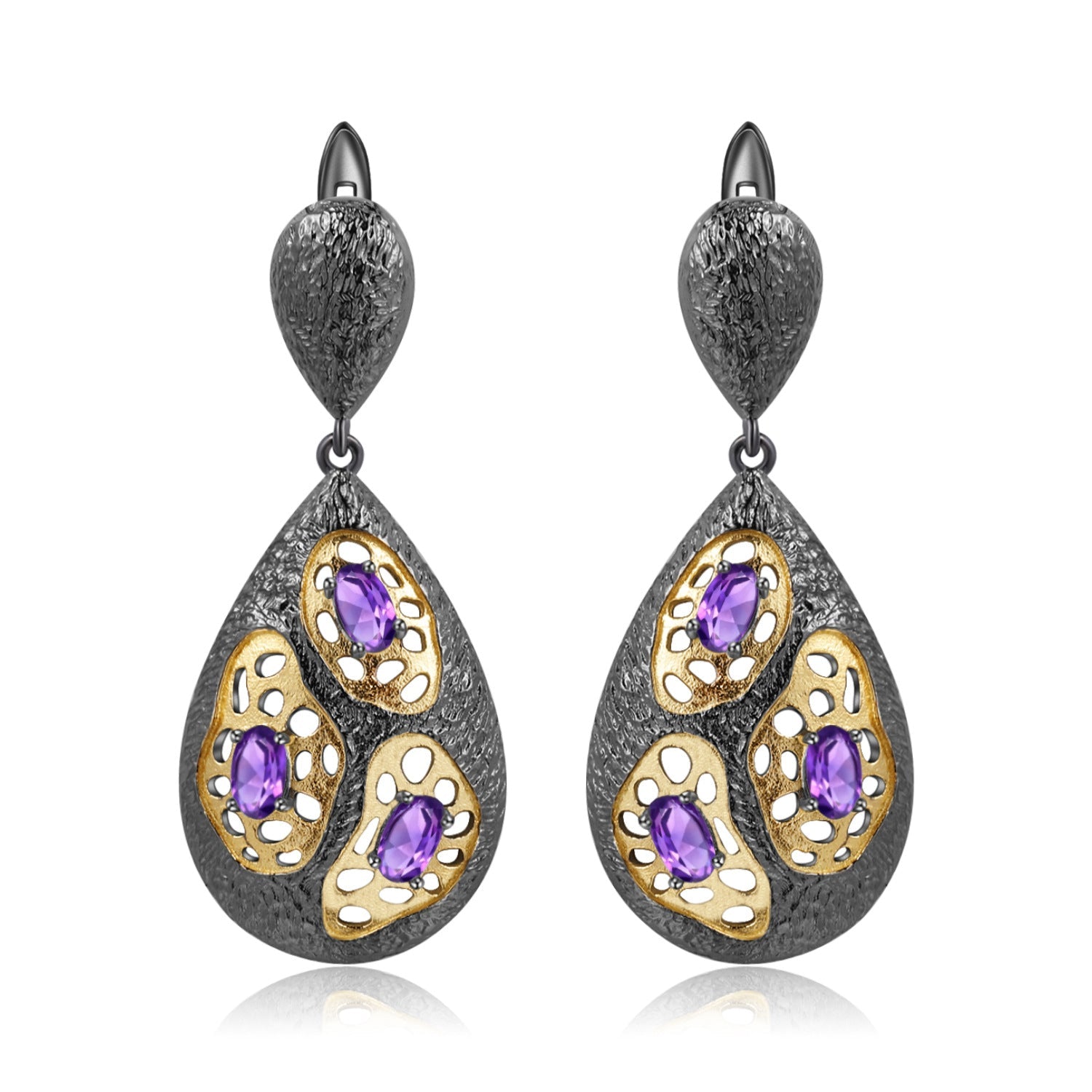 This Italian styled earrings are crafted from sterling silver and feature an intricate hollow pear drop shape set with inlaid colourful natural gemstones. Perfect for any occasion. this earrings will bring a touch of elegance to your look.