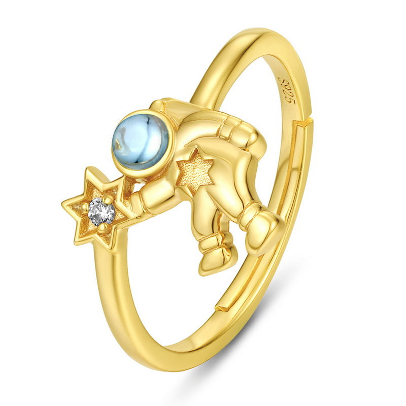 Elevate your style with the timeless beauty of the stars and make a celestial statement with the Natural Swiss Blue Topaz Astronaut Zircon Star Opening Sterling Silver Ring.