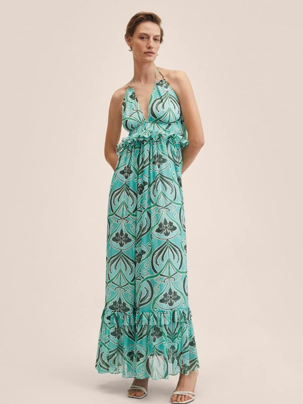 Dresses: halter dress.beach dress.china dress.flower dress.dress party.spring clothes.
