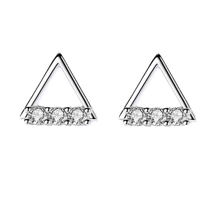 Add subtle sparkle to your look with this Triangle with Zircon Silver Studs Earrings for Women. Expertly crafted with a hollow Triangle. this earrings feature glistening Zircon stones. sure to make a stylish statement with any outfit.