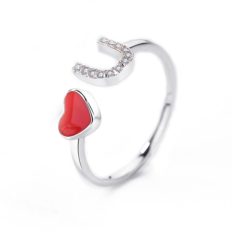 This exquisite U-shape Zircon with Red Heart Silver Ring features an opening design. with a Zircon U-shape and an a eye-catching Red Heart that provides a beautiful contrast. Enjoy its fine craftsmanship and timeless appeal.