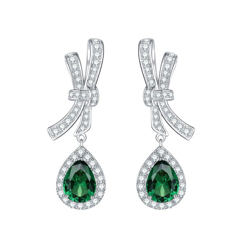 This 6*8mm water drop shaped Lab-Created Emerald pendant is set in Platinum-plated Silver and shaped into a stunning drop earring. Its beautiful deep green hue features a high clarity and shine. making it the ideal accessory for any formal or casual occasion.