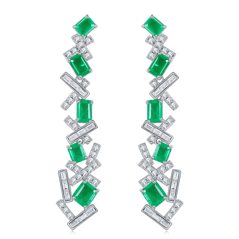 This stylish sterling silver Lab-Created Emerald Irregular Splicing Drop Earrings is the perfect accessory for any look. Crafted with lab-created emeralds. this earrings offer a stunning sparkle and it will add a touch of glamour to your wardrobe.