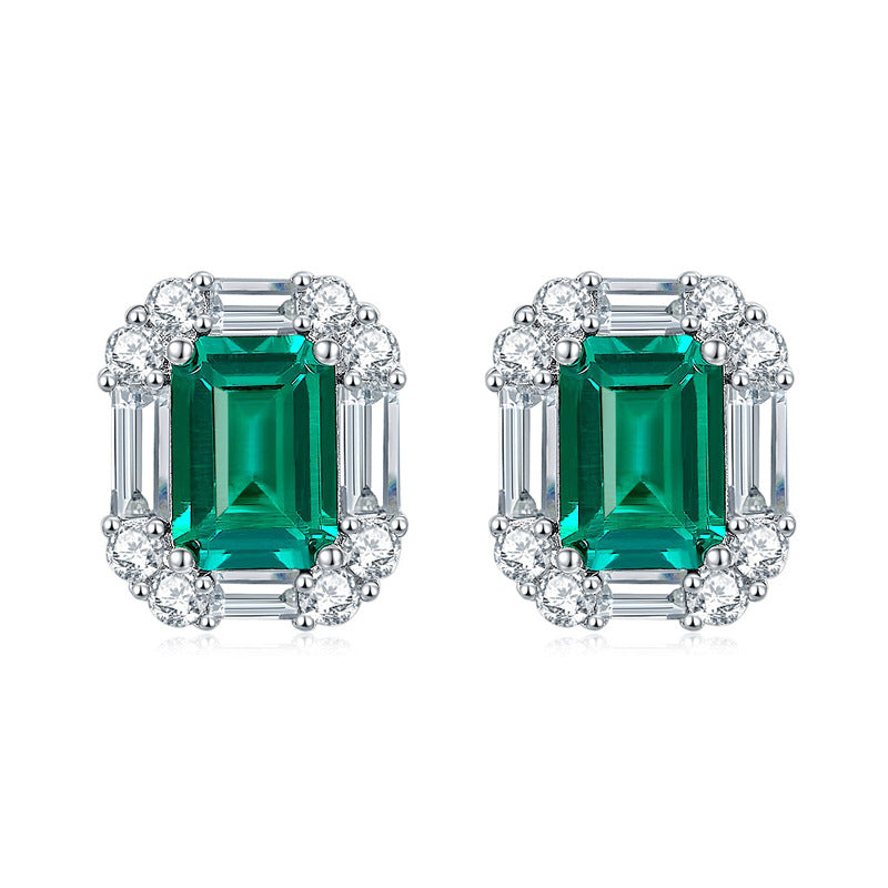 This vintage rectangular-shaped lab-created emerald stud earrings are the perfect addition to any woman's jewelry collection. Crafted in sterling silver. And the 6*8mm gemstones boast a classic cut that catches the light and stands out in any ensemble.