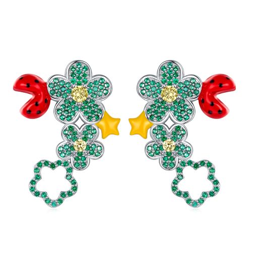 This stunning sterling silver Ladybug with Flower Enamel Earrings will be the perfect accent to your look. Crafted with a red enamel Ladybug and Green Spinel Flower. this earrings is timeless and eye-catching. Make a statement with this beautiful earrings.