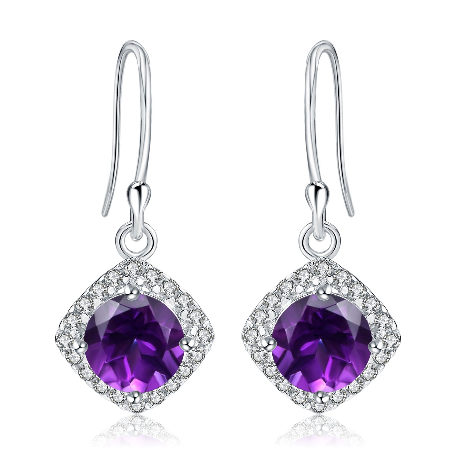 This Natural Amethyst Soleste Halo Round Shape Silver Drop Earrings for Women will instantly elevate your outfit. The round-cut natural amethyst Soleste halo pendant is unique and elegant. sure to leave you feeling beautiful and radiant. Crafted with the sterling silver. they're sure to last you a lifetime.