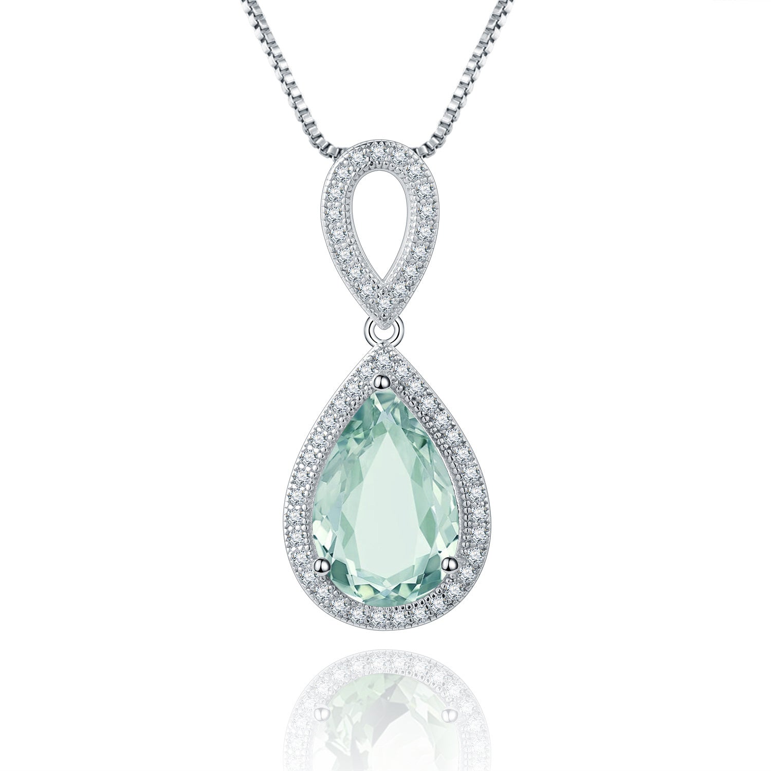 This elegant Light Luxury Premium Fashion Style Inlaid Natural Crystal Soleste Halo Pear Drop Shape Pendant Silver Necklace is the perfect accessory for any ensemble. Crafted with pear drop natural green crystal. it's finished with a shimmering Soleste Halo that adds an eye-catching sparkle to wherever you go. The perfect statement piece for any occasion.