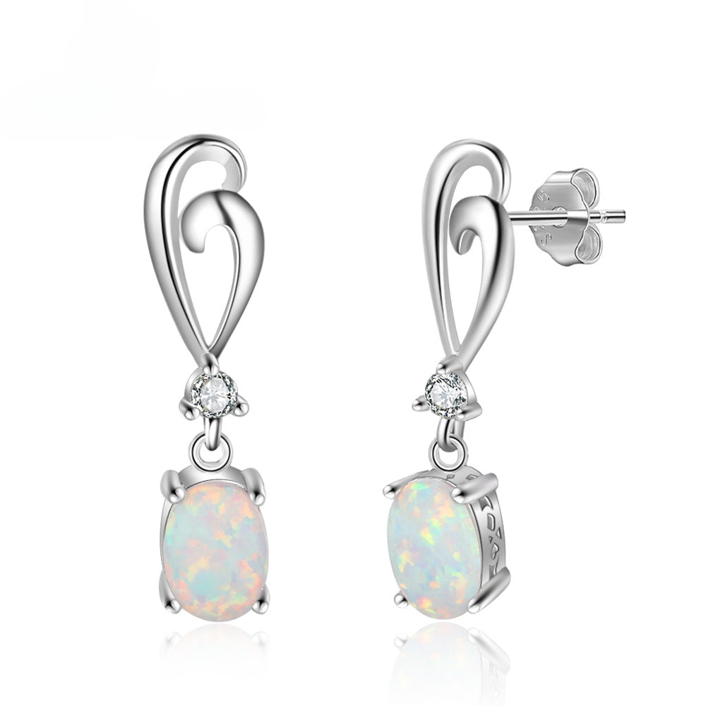 Crafted with sterling silver and genuine opal. these drop earrings are the perfect addition to any outfit. The oval opal pendant is adorned with a sparkling small zircon for extra shine. Feel elegant and special with these glamorous earrings. These luxurious earrings will make you stand out and feel confident. thanks to the fine details of sterling silver. genuine opal. and the sparkling small zircon. With a classic oval design. these earrings are perfect for any occasion.