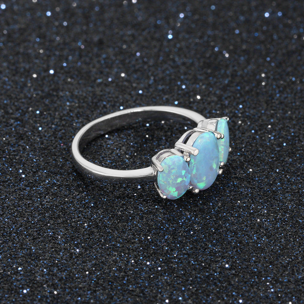 This exquisite Three Oval Blue Opal Sterling Silver Ring showcases precious opal's timeless beauty in a modern setting. and the opal shines in shades of brilliant blue. offering ultra-elegance and sophistication. Crafted with meticulous attention to detail. it will elevate your look with its perfect blend of classic and contemporary style.