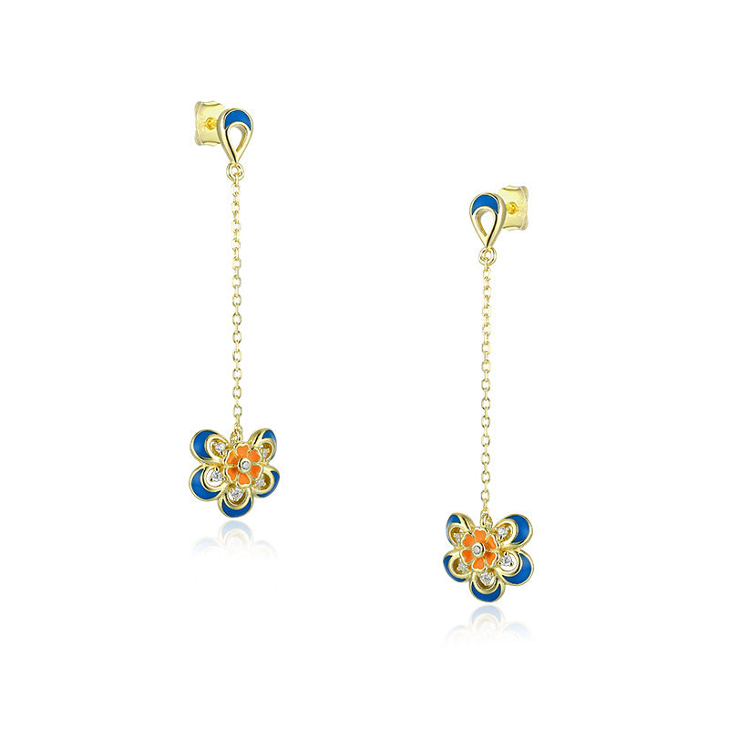This beautiful earrings feature a tassel design. hang with a flower pendant that decorate with zircon. and colourful enamel make the earrings more charming. Crafted with sterling silver. this drop earrings are perfect for adding a touch of glamour to any outfit.