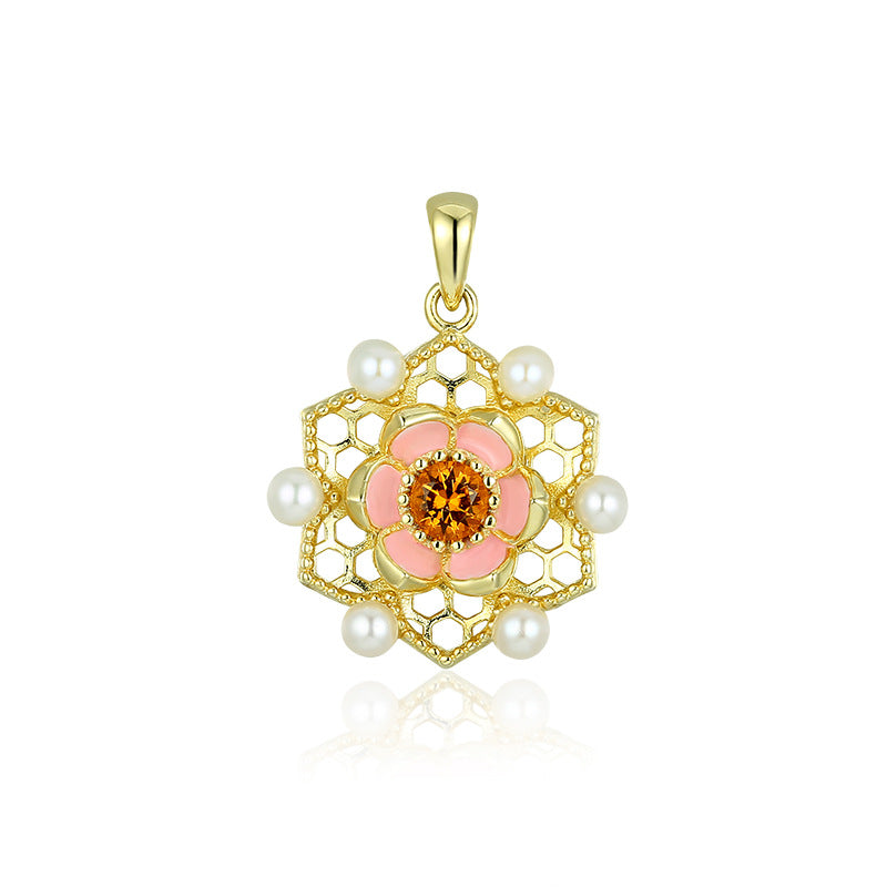 Celebrate the beauty and grace of the lotus flower with this sterling silver lotus pendant. This stunning piece features a lotus pattern surrounded by natural freshwater pearl and embellished with zircons.