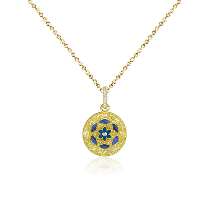 Embrace the beauty and symbolism of the lotus flower with this sterling silver lotus pendant. This elegant piece features a lotus pattern engraved on a round disc that shines with every angle.