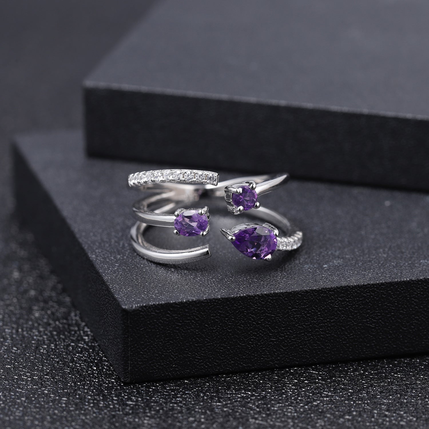 This Three Layers Split Shank ring is crafted out of silver. perfectly accented with natural gemstones. The ring arm is split in three layers. featuring an opening design for added elegance. A timeless piece that will last a lifetime.
