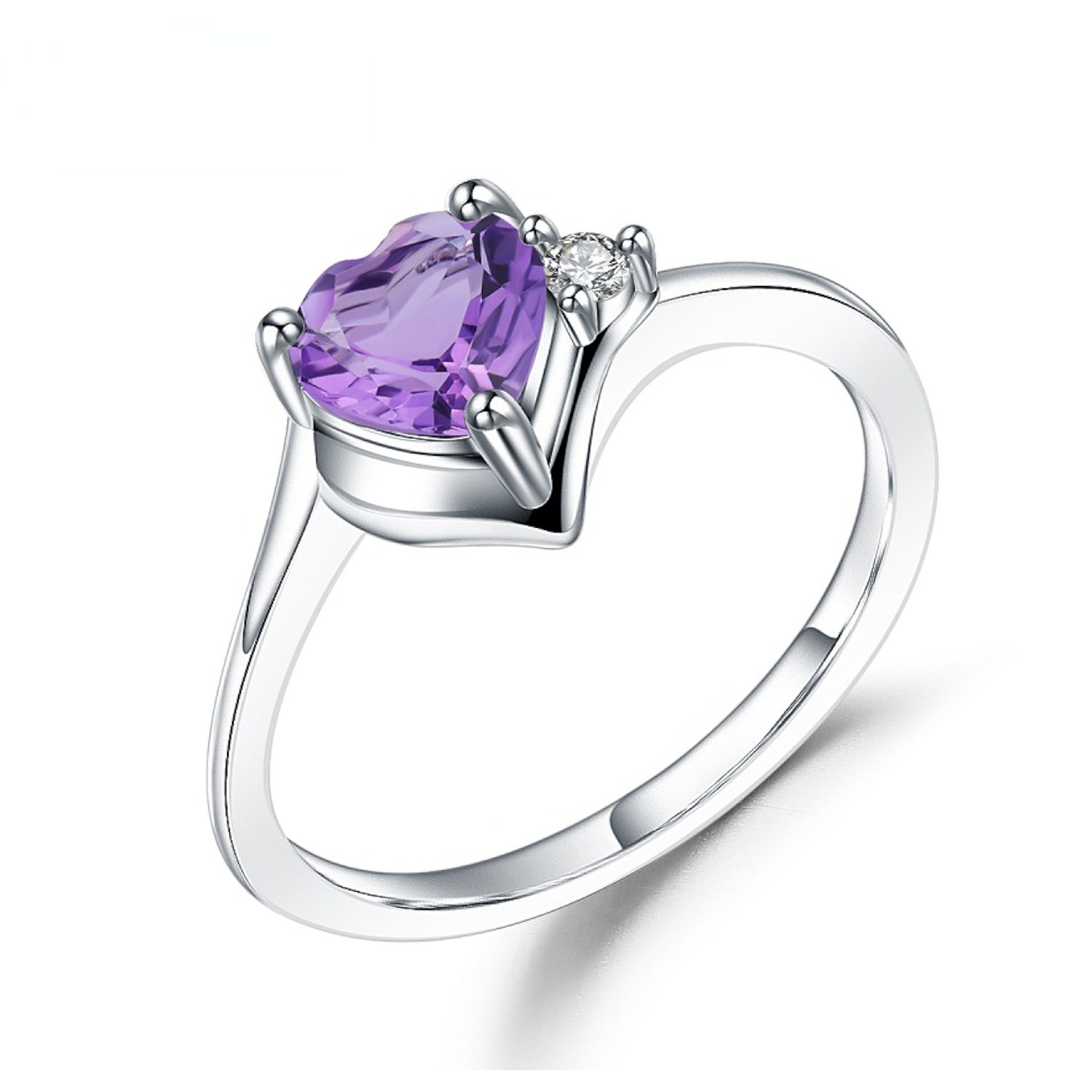 This Love Silver Ring for Women features a unique and stylish design inlaid with a heart-shape Natural Amethyst stone. An elegant and luxurious piece for any fashionista. this ring will exude glamour and sophistication for any occasion.
