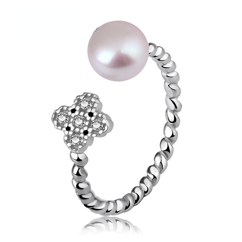 This Zircon Lucky Clover with Pearl Opening Silver Ring is an elegant way to add an extra touch of style to any outfit. Crafted with an opening design and spiral ring band. this ring is decorated with a Zircon Lucky Clover and a round pearl for a sophisticated look.