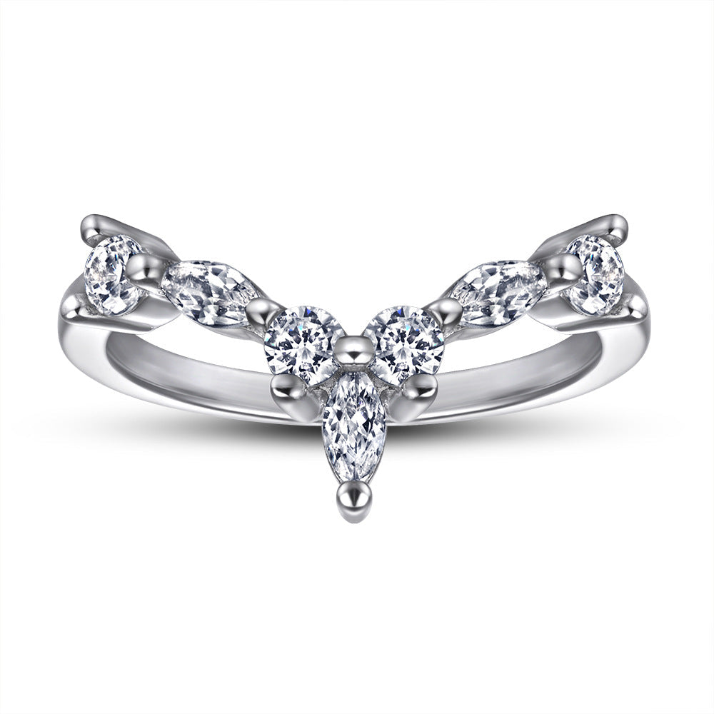 This classic V-shaped silver ring for women features an elegant combination of Marquise and Round Zircon for timeless beauty. Crafted from sterling silver. this piece is perfect for any occasion.
