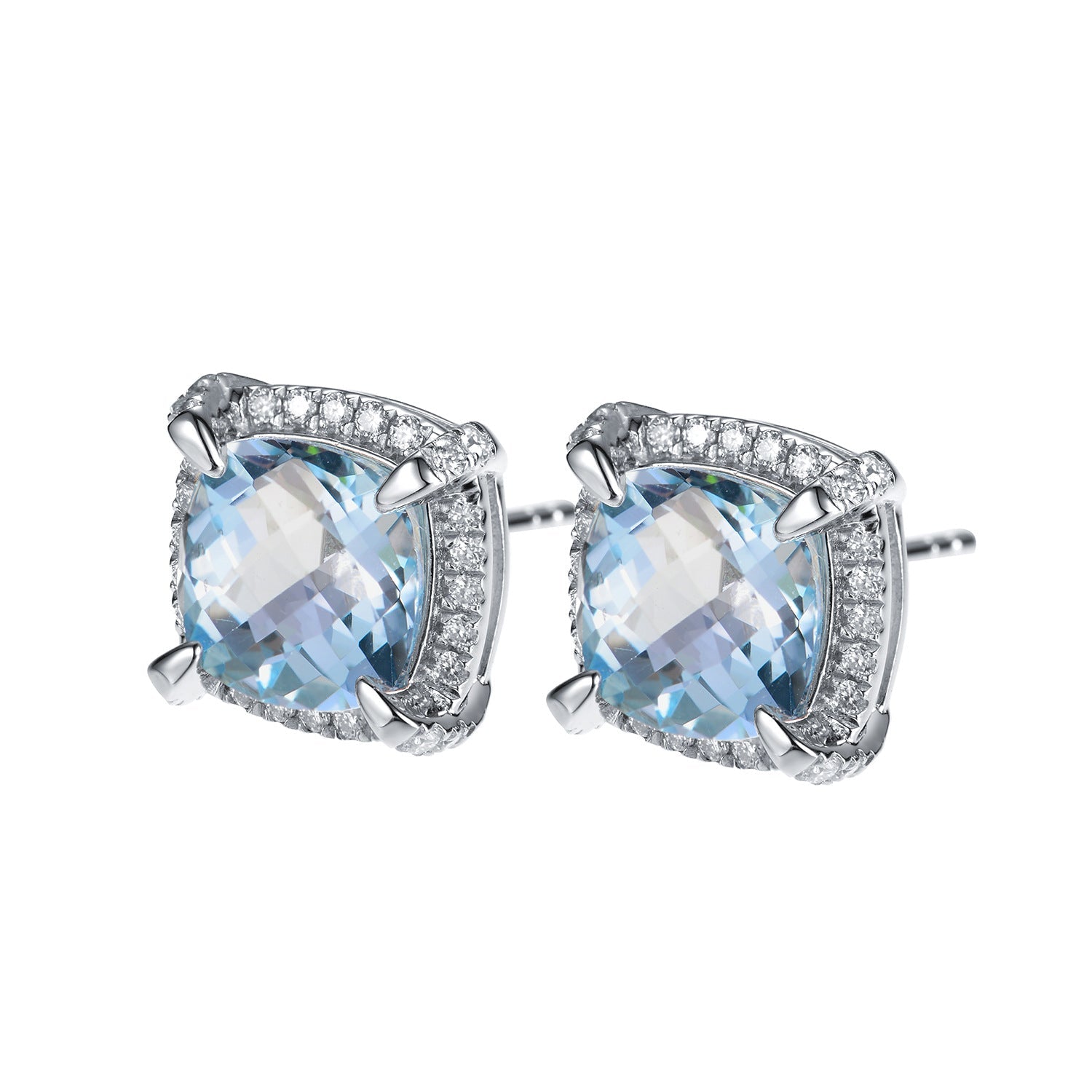 These stylish Soleste Halo Square Natural Blue Topaz Silver Stud Earrings make a show-stopping statement. Crafted with a luxurious. icy blue topaz center stone. encircled by an eye-catching halo of pave-set white small Moissanite. these earrings will dazzle with a timeless sparkle. Perfect for any occasion.