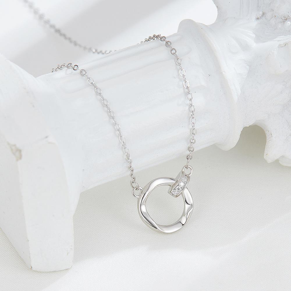 This 925 silver collarbone necklace features two connected rings pendant. providing a stylish look and feel. Crafted with sterling sliver. this necklace is perfect for any occasion and is sure to make a stylish statement.