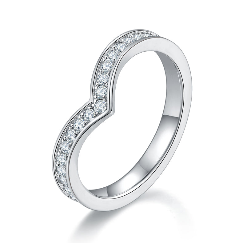 This Moissanite ring features a unique V-shaped design that is both exquisite and elegant. The full circle Moissanite adds a unique touch to this beautiful ring. This ring has long-lasting luster and is not easy to oxidize or wear-resistant. It's also not easy to cause allergies. This ring is perfect for any occasion and makes for an excellent gift choice.