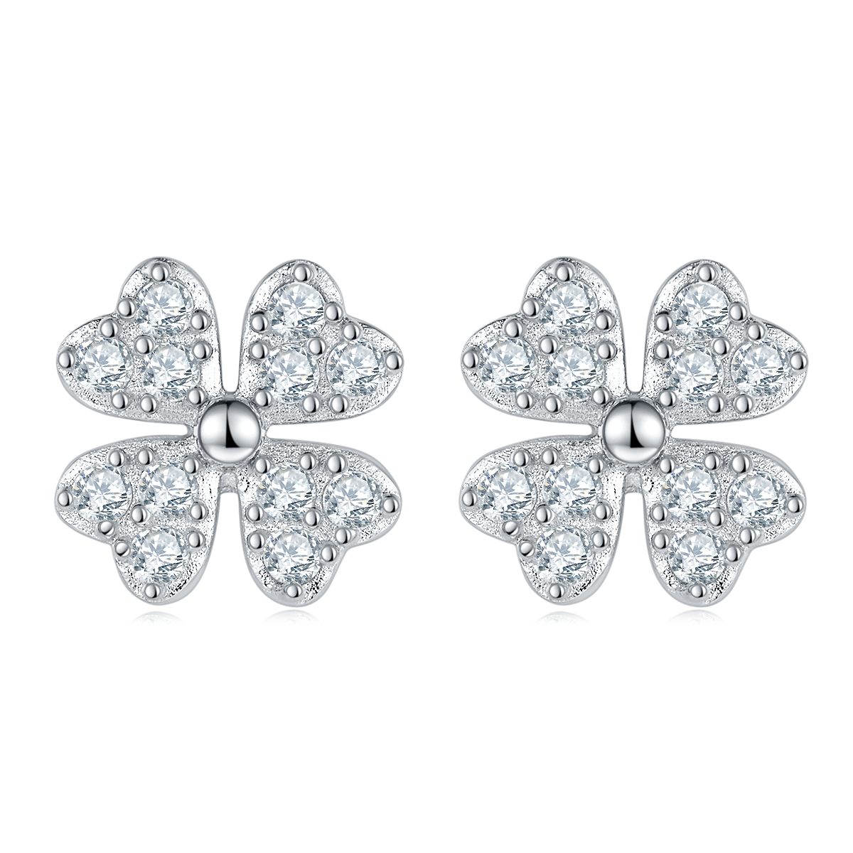 This Moissanite earrings features the design in the shape of a lucky four-leaf clover. This design element is often associated with good luck and fortune. making it an ideal gift for someone special or as a personal symbol of good luck. Multiple small Moissanite stones make the earrings more fashion and sparkly.